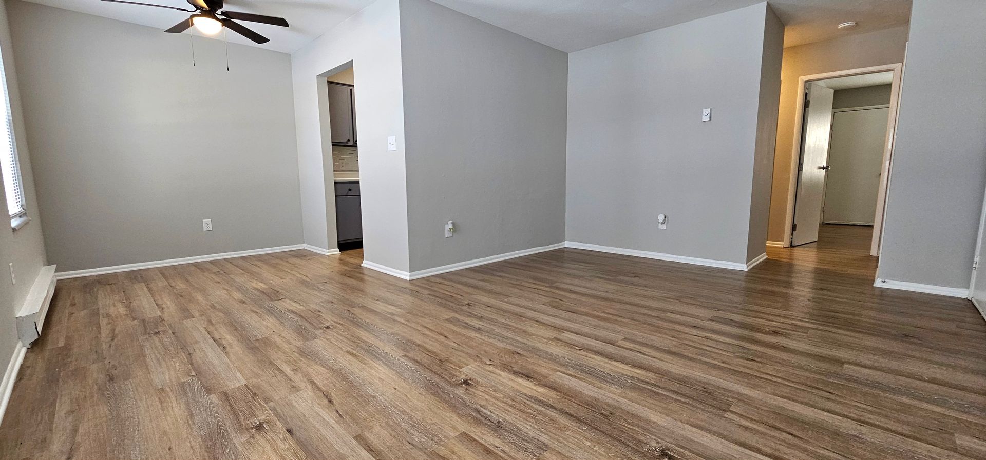 Newly renovated interior with modern LVP flooring—stylish and easy to keep clean