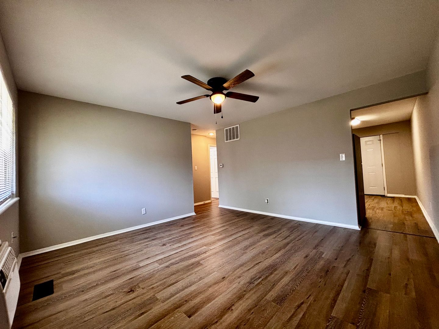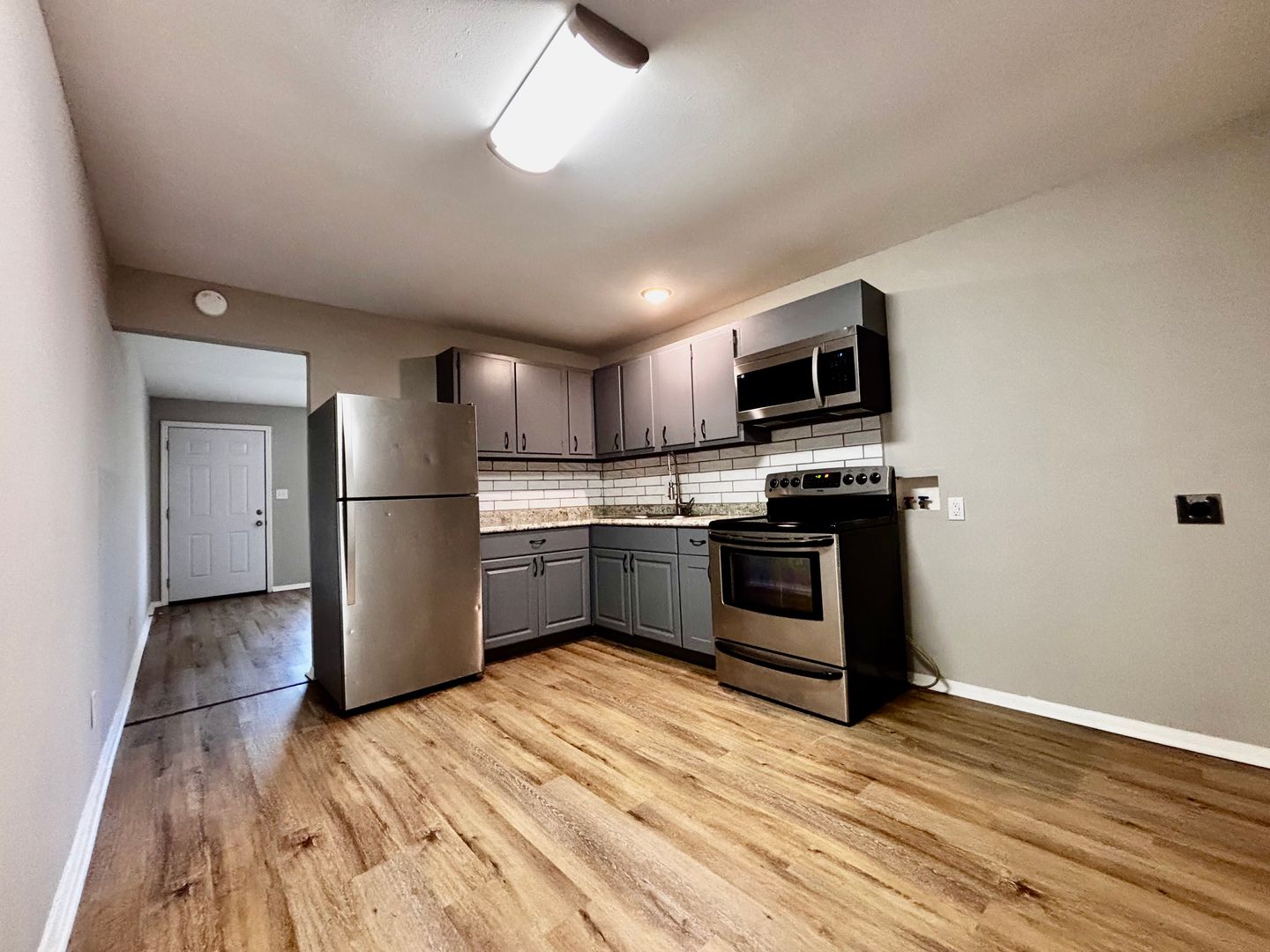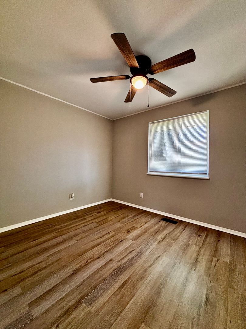 The kitchen opens directly to a private back porch, allowing for plenty of natural light and a great space to relax or enjoy fresh air. The living area and bedrooms offer a practical layout with ample space.